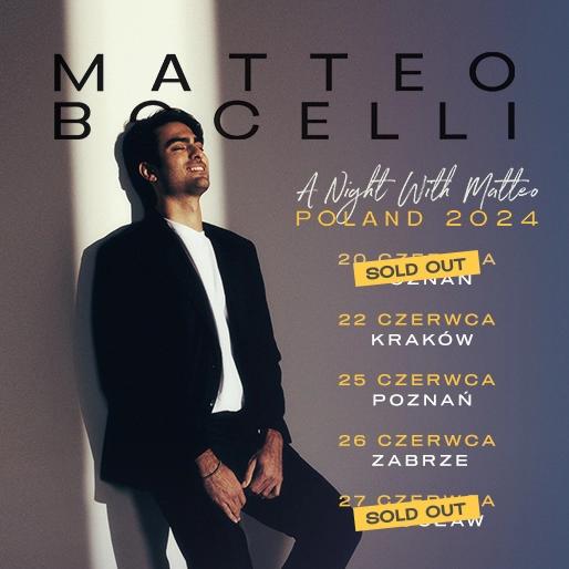 Po fenomenalnych koncertach w październiku, Matteo Bocelli powraca do Polski w czerwcu 2024 roku, by ponownie poruszyć serca swoich fanów. Jednak zanim to nastąpi, pojawi się jako zagraniczna gwiazda Sylwestrowej Mocy Przebojów telewizji Polsat na koniec 2023 roku.
