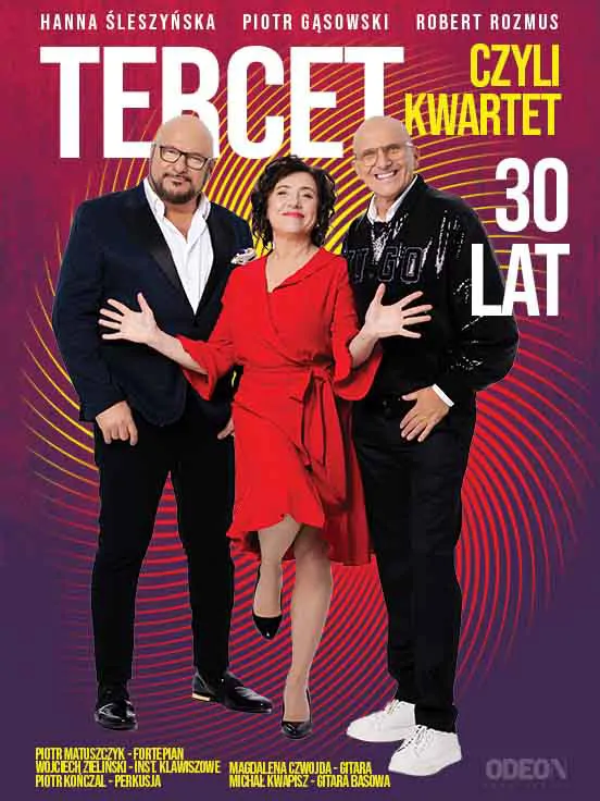 Najzabawniejsza formacja na polskiej scenie muzycznej, w składzie: Hanna Śleszyńska, Robert Rozmus i Piotr Gąsowski, zaprasza na jubileuszowe koncerty. Z towarzyszeniem zespołu na żywo artyści zaprezentują swoje wyjątkowe połączenie muzyki estradowej, kabaretowej i lirycznej, które od lat bawi i zachwyca publiczność. Bilety na jubileuszowe koncerty Tercet, czyli kwartet już w sprzedaży – nie przegap tej niezrównanej zabawy z najlepszymi na polskiej scenie!