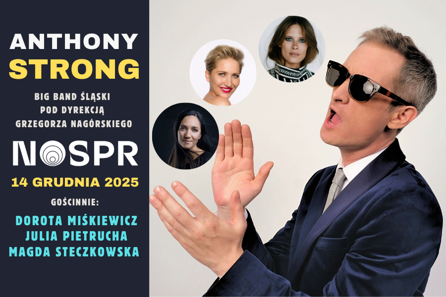 Zapraszamy na wyjątkowy koncert do katowickiego NOSPRu, gdzie „angielski gentleman” Anthony Strong zagra i zaśpiewa wraz ze Big Bandem Śląskim pod dyrekcją Grzegorza Nagórskiego oraz gościnnie: Julia Pietrucha, Dorota Miśkiewicz oraz Magda Steczkowska.Brytyjski, swingujący jazz wraz z silną reprezentacją kobiecej polskiej wokalistyki to tak naprawdę jedyny ich koncert i zarazem okazja, aby przekonać się o tym, iż muzyka nie ma granic.