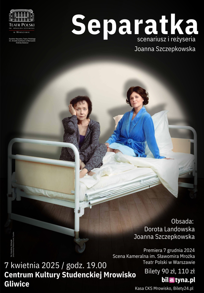 Bohaterkami sztuki Joanny Szczepkowskiej są dwie kobiety, które prawdopodobnie nigdy by się nie spotkały, gdyby nie przypadek. Marta i Alina trafiają do szpitalnej sali przeznaczonej dla jednej osoby. Żadna z nich nie chce ustąpić i wyjść, bo każda uważa, że to właśnie jej należy się miejsce w „jedynce”. Skazane na swoje towarzystwo – próbują przetrwać do momentu, aż ktoś przyjdzie i zdecyduje za nie. Różnice w charakterach i poglądach nie ułatwiają im czekania, prowadząc do wielkich napięć, szeregu zabawnych nieporozumień, ale też do niespodziewanych zwrotów akcji. Punkt widzenia każdej z kobiet nie jest tak oczywisty, jak się z początku wydaje…„Separatka” to komedia, z gatunku tych, co pod pozorem lekkiej formy przemycają przenikliwą prawdę o naszej rzeczywistości.