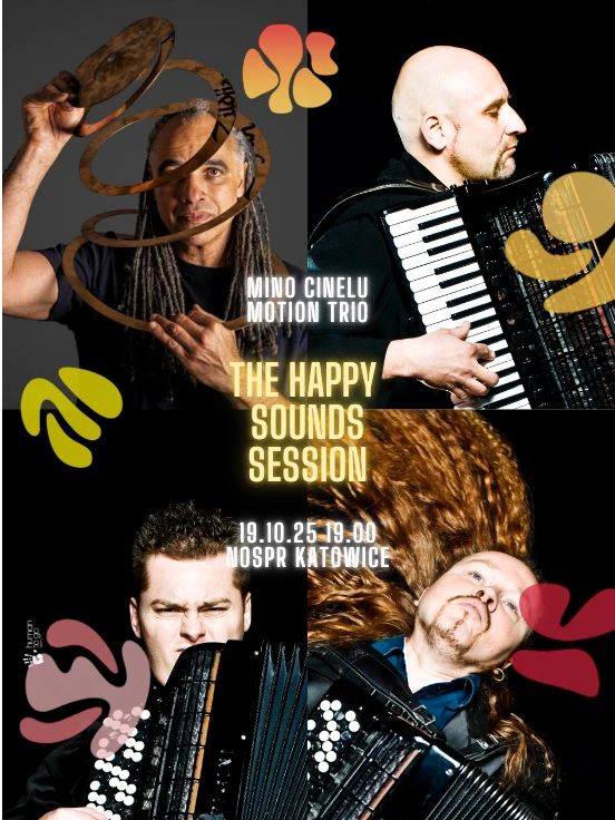 The Happy Sounds Session to spotkanie mistrzów improwizacji, rytmu i harmonii. Trzy akordeony i multiinstrumentalista stworzyli brzmienie, które przekracza granice gatunków. Jazz, world music, minimalizm i klasyczna precyzja spotykają się w dynamicznym, niepowtarzalnym widowisku.