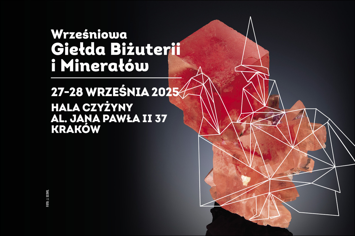 Zapraszamy na Wrześniową Giełdę Biżuterii i Minerałów w dniach 27-28 września 2025 (sobota i niedziela), która odbędzie się w Hali Sportowej Czyżyny Politechniki Krakowskiej, al. Jana Pawła II 37 - wejście od ul. Życzkowskiego, w godzinach 10:00-18:00.