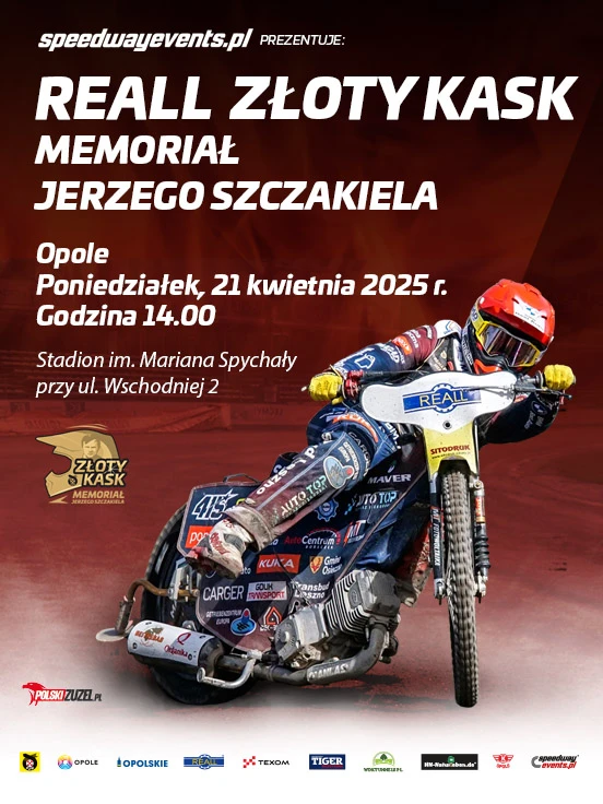 W Lany Poniedziałek na stadionie w Opolu, odbędzie się turniej żużlowy Reall Złoty Kask - Memoriał Jerzego Szczakiela. Na zawody zapraszają Polski Związek Motorowy, Speedwayevents.pl oraz OK Bedmet Kolejarz Opole. Bilety na Reall Złoty Kask - Memoriał Jerzego Szczakiela już dostępne,