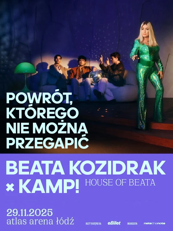 Beata Kozidrak x KAMP! - HOUSE OF BEATA. Powrót, na który wszyscy czekali! Po długiej przerwie Beata Kozidrak ogłasza swój powrót na scenę! Marcowy koncert musiał zostać przełożony, ale nadszedł czas, by projekt HOUSE OF BEATA wrócił w nowym terminie. 29 listopada 2025 roku w łódzkiej Atlas Arenie odbędzie się jedyny koncert Beaty Kozidrak i KAMP!