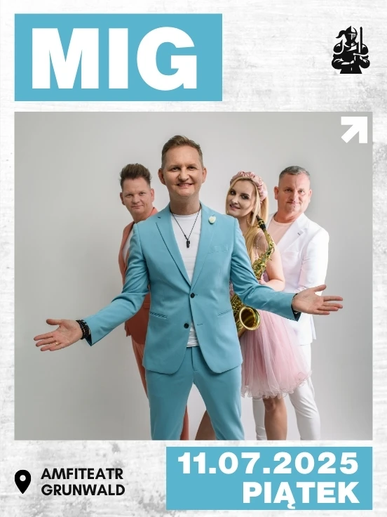 Grunwald rozbrzmi nie historycznym szczękiem oręża, lecz pulsującym rytmem disco polo! Na scenie Amfiteatru Grunwald wystąpi jeden z najpopularniejszych zespołów tego gatunku – zespół MIG! Bilety na koncert MIG już dostępne.