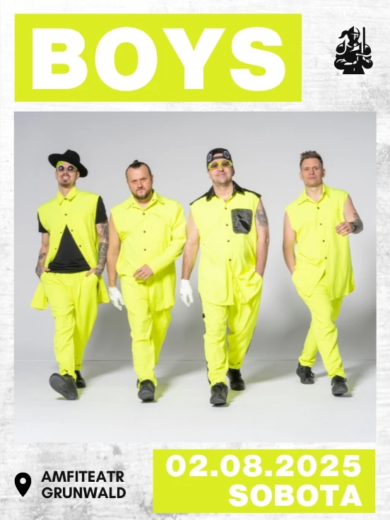 Na scenie Amfiteatru Grunwald wystąpi zespół Boys – jedna z największych legend polskiego disco polo, znana z dziesiątek hitów, które od lat rozgrzewają publiczność w całym kraju. Bilety na loncert zespołu Boys już dostępne. Bilety na koncert Boys już w sprzedaży.
