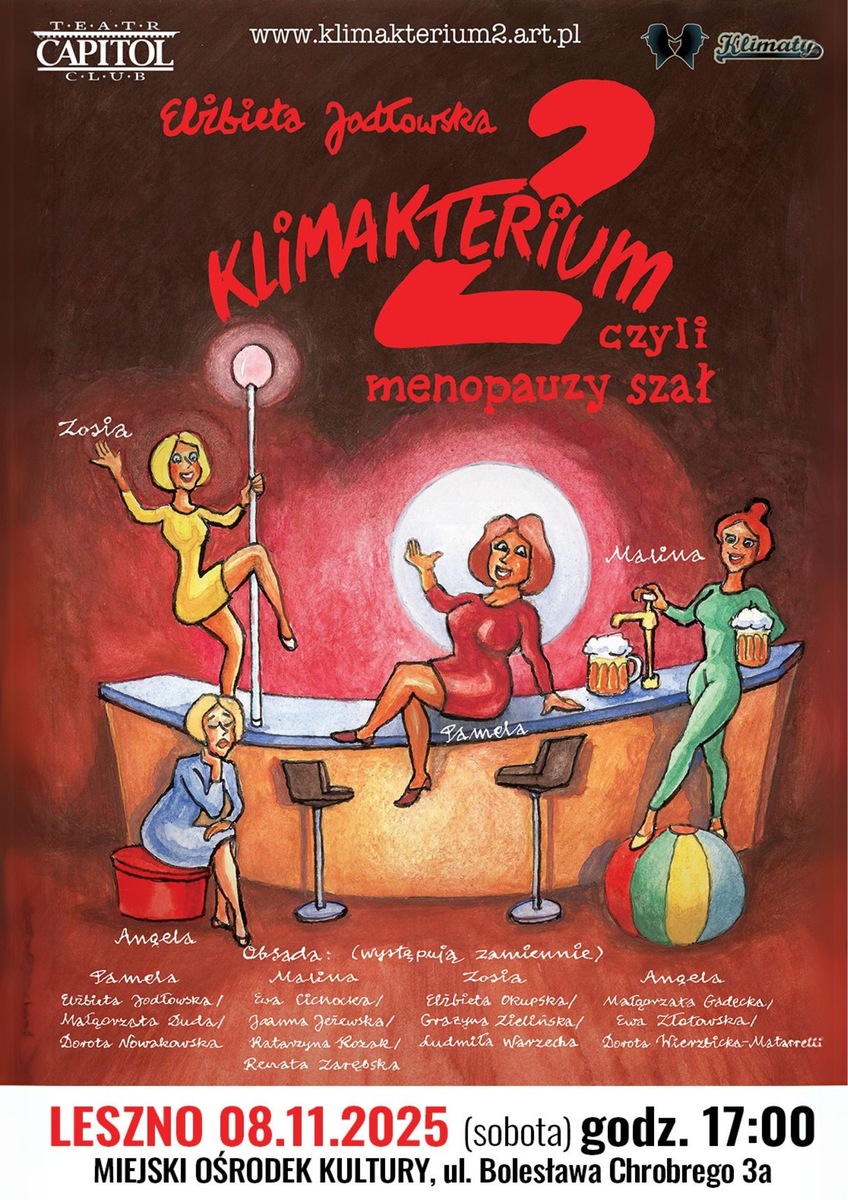 "Klimakterium 2... " czyli kontynuację teatralnego hitu obejrzymy w Miejskim Ośrodku Kultury w Lesznie 8 listopada 2025 r. o godz. 17:00.