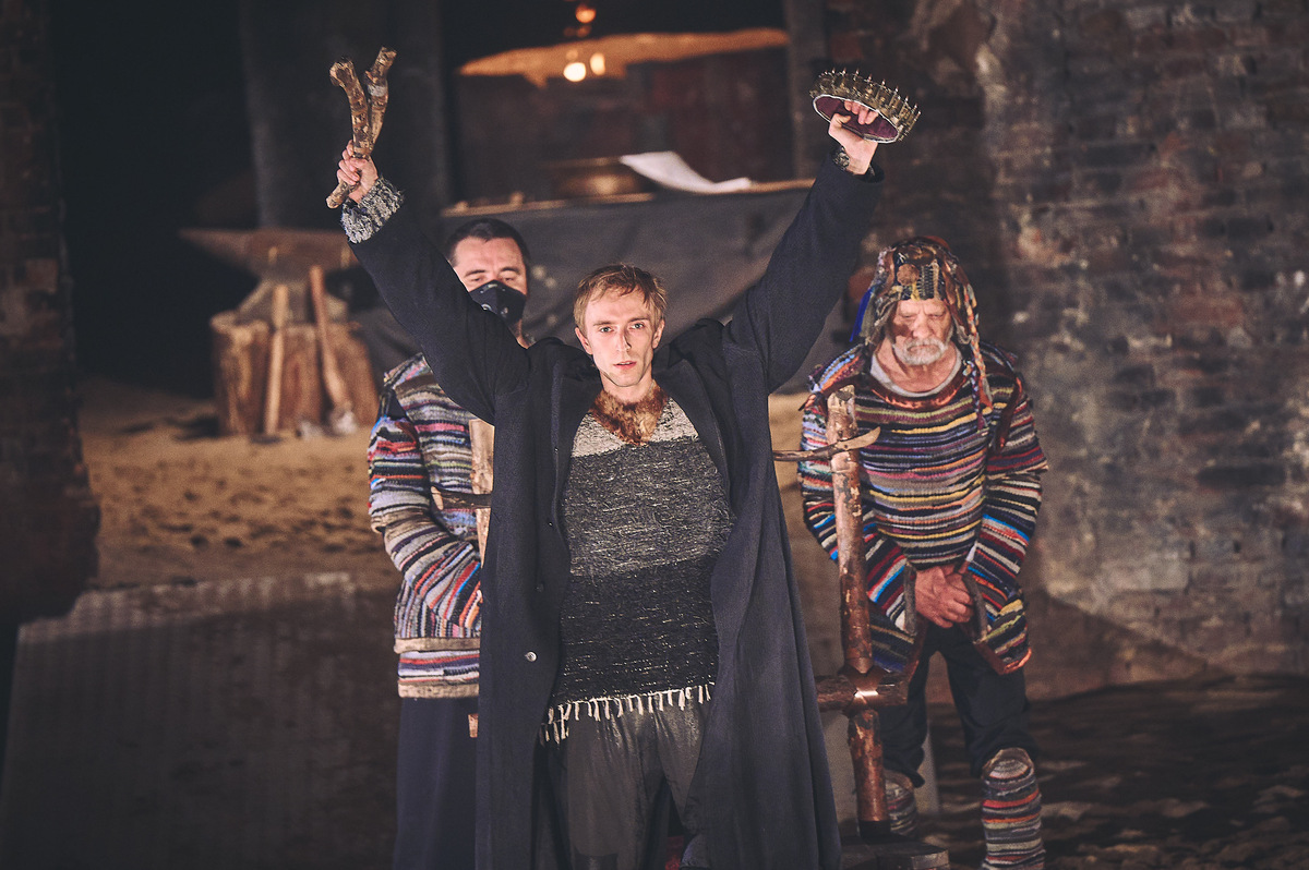"Hamlet, Książę Danii" to jeden z najbardziej widowiskowych spektakli Teatru Modrzejewskiej z muzyką graną na żywo (zespół Kormorany). Jeszcze przed właściwym rozpoczęciem akcji spektaklu widzowie zgromadzeni w budynku Sceny na Nowym Świecie, poczuć się mogą niczym w podupadłym, średniowiecznym mieście lub jednej z lokalizacji rodem z Tolkiena czy Martina. Elsynor w surowej i zdegradowanej przestrzeni Sceny na Nowym Świecie unaocznia widzom duchową nędzę gnijącego królestwa Danii. Jesteśmy świadkami widowiska w efektownej oprawie scenograficznej - pełnego ognia, dymów, dynamicznych pojedynków na miecze, z których sypią się iskry, aktorskiej kaskaderki na granicy ryzyka, tanecznych korowodów i efektownych scen zbiorowych. Oglądamy rzeczywistość, w której bohaterowie mocują się zarówno między sobą, jak i z samymi sobą o ostatnią możliwość zdobycia władzy. Momenty emocjonalnych zrywów Hamleta – wybuchy jego złości i frustracji – są skorelowane z drapieżną scenografią pełną ognia, jak również z dynamiczną choreografią z walką na miecze i podgłaśnianiem bądź wyciszaniem muzyki granej na żywo. Kopka i Głomb oddziałują tym samym na wszystkie zmysły widza, starając się oddać szaleńcze zmagania Hamleta z samym sobą. Dzieje się, aż dech zapiera.
