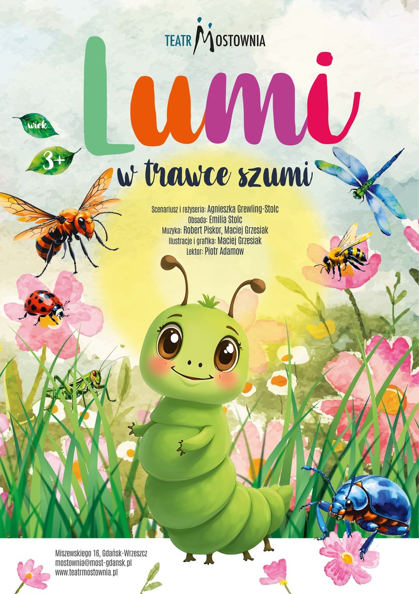 „Lumi w trawce szumi” to niezwykły spektakl rodzinny z muzyką na żywo – pełen kolorów, tańca, dźwięków i emocji. To ciepła, wzruszająca i mądra opowieść o dorastaniu, odwadze i wierze w siebie, która poruszy zarówno dzieci, jak i dorosłych.