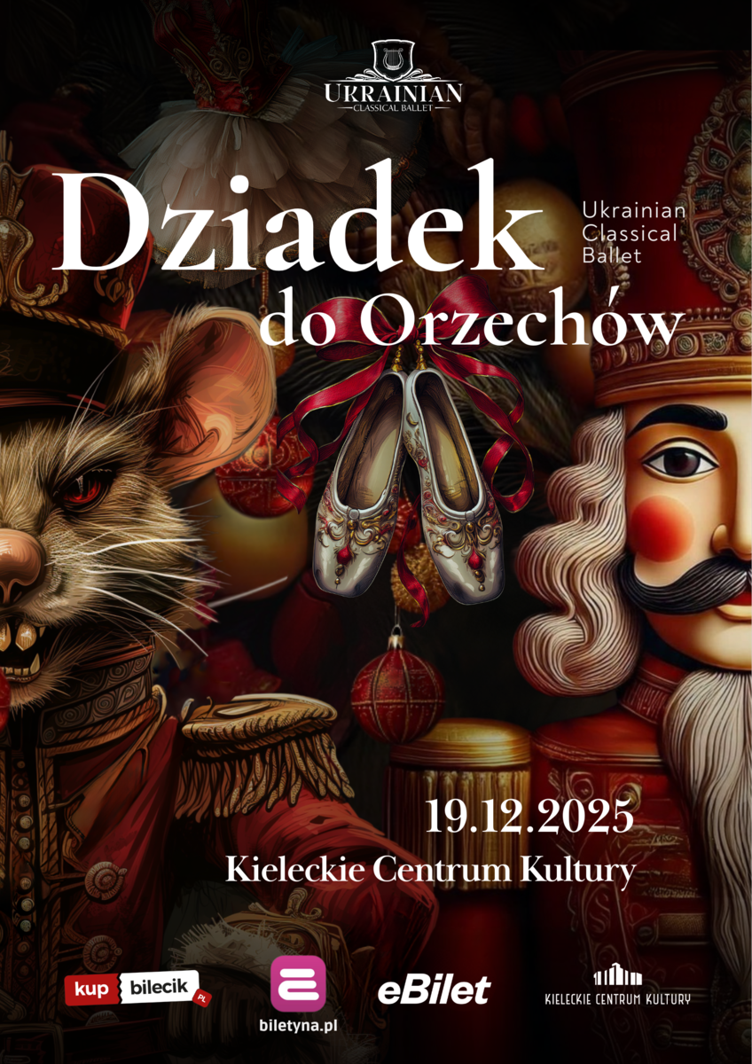 Dziadek do orzechów - Ukrainian Classical Ballet na motywach baśni E. Hoffmanna "Dziadek do orzechów i Król Myszy". Najpiękniejszy balet sezonu Świątecznego! Tego zimowego sezonu "Dziadek do orzechów i Król Myszy" w wykonaniu Ukrainian Classical Ballet wyrusza w Wielką Europejską Trasę. Ulubiony balet Świąteczny, stworzony na motywach baśni Hoffmanna, powraca na scenę w nowoczesnej wersji z wyjątkowym zespołem artystów. To przedstawienie, które daje poczucie prawdziwego święta. Ożywa w nim magia dzieciństwa, świat fantazji i snów. Wyszukana choreografia, niepowtarzalni kostiumy, emocjonalna muzyka i nowoczesne efekty sceniczne tworzą atmosferę, w którą chce się zanurzyć. Widzowie wyruszają w czarodziejską podróż razem z Klarą i Dziadkiem do orzechów, przechodząc przez zaśnieżony las, bal słodyczy i ekscytującą bitwę z Królem Myszy. W rolach głównych - soliści wiodących teatrów Europy. Ich mistrzostwo i charyzma sprawiają, że ten balet staje się szczególnie żywy i emocjonalny. Przedstawienie zachwyca zarówno dorosłych, jak i dzieci. Ponad 50 występów w ramach trasy odbędzie się w Niemczech, Włoszech, Austrii, Szwajcarii, Czechach, Polsce, Belgii, Danii, Słowenii, Chorwacji, Serbii, Bośni i Hercegowinie oraz na Węgrzech. Nie przegap okazji, aby zobaczyć klasykę ożywającą w nowym świetle. To przedstawienie to idealny wybór na rodzinny wieczór, prezent dla bliskich lub sposób na zanurzenie się w świąteczny nastrój.