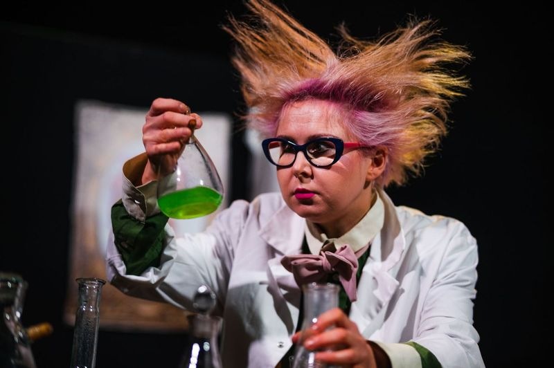 Pan Kleks, jak wiadomo, przepada za wynalazkami, technicznymi nowinkami i wszystkimi niekonwencjonalnymi sposobami ulepszania (niekoniecznie upraszczania) codzienności. Mało kto jednak wie, że wszelkich badań i innowacji dokonuje się w tajnym Laboratorium. To będzie wycieczka po technologicznym zapleczu Akademii Pana Kleksa. Wraz z szalonym docentem i jego niewiele bardziej zrównoważoną asystentką zaprezentujemy w akcji m.in. ciekły azot, ciekły tlen, polimery. Będziemy mrozić, podpalać i wybuchać, a wszystko to na styku nauki i czarów.