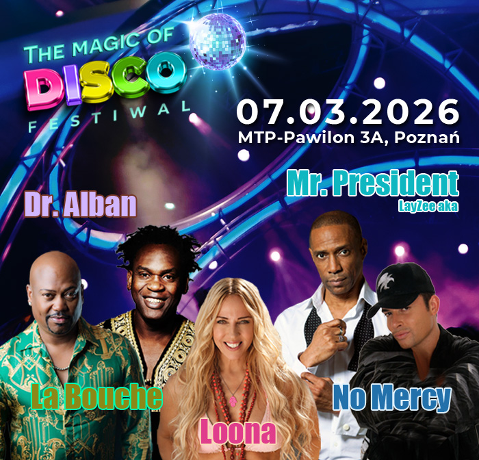 W świecie, w którym muzyka zmienia się jak w kalejdoskopie, są dźwięki, które nie tracą na aktualności. The Magic of Disco Festival w 2026 roku w Poznaniu to właśnie taka podróż – pełna kolorów, wspomnień, tańca i emocji. W tej edycji wydarzenia wystąpią artyści, którzy na przełomie lat 90. i 2000. rozgrzewali parkiety klubów i dyskotek całej Europy. Na scenie pojawią się: La Bouche, No Mercy, Loona, Dr. Alban oraz Mr. President (LayZee aka).