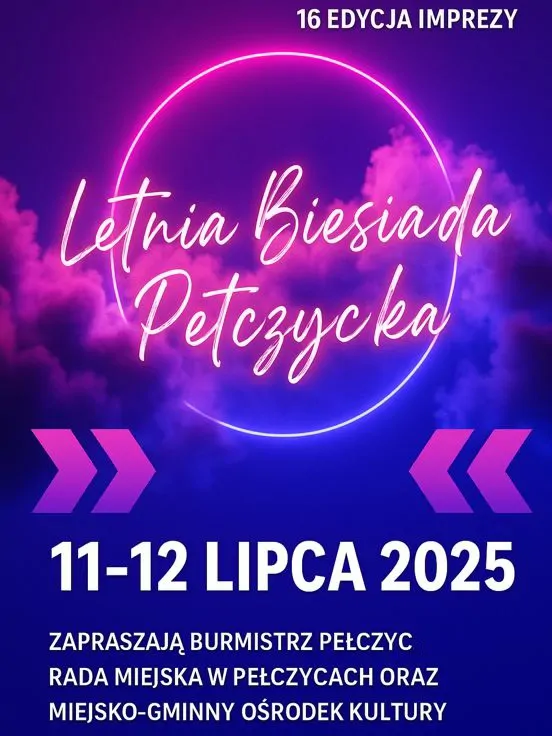 Letnia Biesiada Pełczycka 2025 odbędzie się 11-12 lipca na Stadionie Miejskim w Pełczycach. Impreza zorganizowana jest przez Burmistrza Pełczyc, Radę Miejską w Pełczycach oraz Miejsko-Gminny Ośrodek Kultury w Pełczycach. Bilety na Letnią Biesiadę Pełczycką już w sprzedaży.