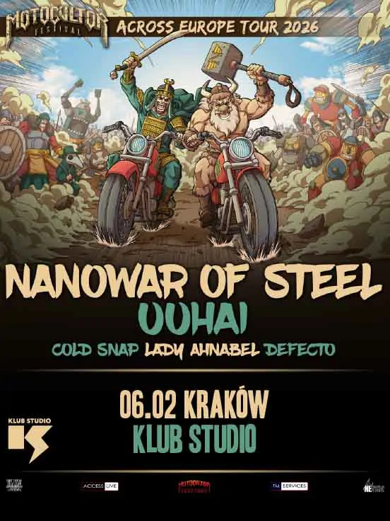 Od pól Bretanii po największe kluby Europy, duch festiwalu Motocultor wraca na trasę! Przygotuj się na epicką podróż, z dwoma najbardziej oryginalnymi i elektryzującymi metalowymi zespołami ostatnich lat, która zawita do 27 miast w 9 krajach. Od 9 stycznia do 8 lutego 2025 r. fani z całego kontynentu będą świadkami wyjątkowego święta ciężkiej muzyki, satyry, kultury i niespotykanej dotąd energii! Ten wyjątkowy wieczór uzupełnią: Cold Snap (Chorwacja), Defecto (Dania) oraz Lady Ahnabel (Francja).
