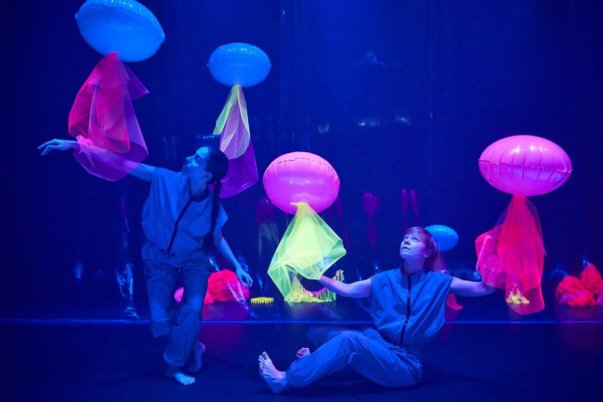 Światło, dźwięk, ruch i tekst tworzą tu zmysłową, poetycką kompozycję, która nie opowiada wprost, ale otwiera przestrzeń do odczuwania i własnych interpretacji. Widzowie zanurzają się w atmosferze głębin morskich już od wejścia na widownię – stając się częścią tego dryfującego, błyskotliwego świata.