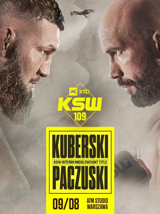 W drugim wakacyjnym miesiącu organizacja KSW zawita do Warszawy z galą XTB KSW 109. Piotr Kuberski (16-1, 14 KO), niepokonany w KSW tymczasowy mistrz wagi średniej, stanie do obrony pasa przeciwko będącemu na fali trzech wygranych z rzędu numerowi trzy rankingu, Radosławowi Paczuskiemu (8-2, 6 KO). Starcie będzie walką wieczoru gali XTB KSW 109, która odbędzie się 9 sierpnia w warszawskim Studiu ATM. Bilety na XTB KSW 109 już dostępne.