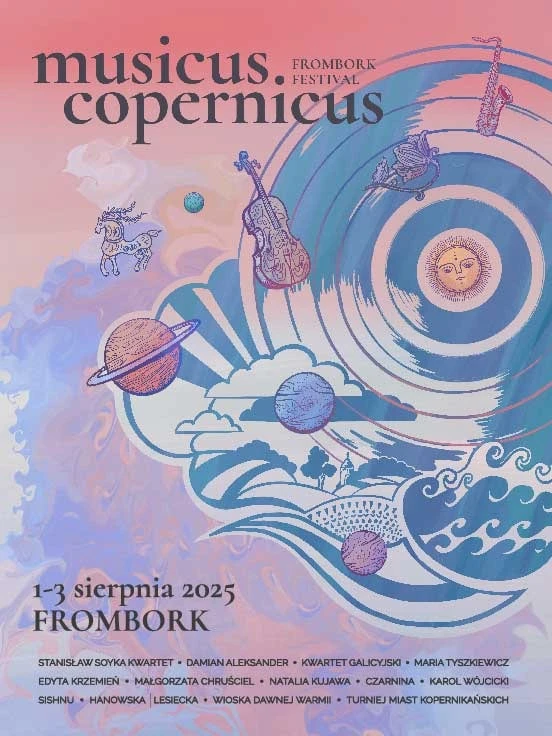 musicus copernicus Frombork Festival 2025 to aż 3 dni wypełnione dźwiękami nietuzinkowej muzyki oraz wiedzą na temat kultury ludowej Warmii, w formie wykładów, warsztatów czy paneli naukowych. Cała inicjatywa odbywać się będzie w dwóch lokalizacjach miasta Frombork. Scena główna, koncertowa, zlokalizowana będzie na Placu Górników, przy historycznej Wieży Wodnej i u podnóża zabytkowego Wzgórza Katedralnego. Miejsce to stanie się sceną dla artystów reprezentujących różne nurty muzyczne – od muzyki filmowej, przez teatr muzyczny, po folk i subtelną muzykę rozrywkową. Wszystko to gwarantuje wspaniały repertuar, najwyższej klasy głosy i zapierające dech w piersiach dźwięki, a całość w podniebnej, niezwykle klimatycznej scenerii, którą dopełni gra świateł.