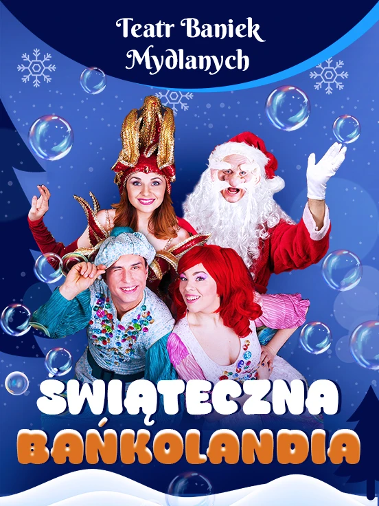 Wesoło-mydlana, śnieżno-magiczna historia dla całej rodziny! Zapraszamy wszystkie dzieci i ich rodziny na niezapomnianą przygodę do krainy czarów i uśmiechu. Bilety na spektakl Teatru Baniek Mydlanych - Świąteczna Bańkolandia już w sprzedaży.
