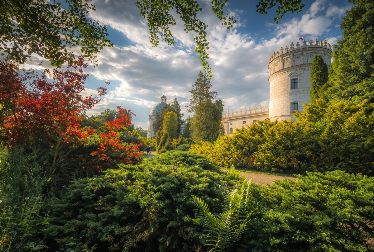 Zamek otoczony jest historycznym 14,5 ha parkiem. Najstarsze jego założenia sięgają XVII wieku i mają charakter geometryczny. Już wtedy obok rezydencji Krasickich od strony wschodniej rozciągały się ogrody zwane „Zwierzyńcem".