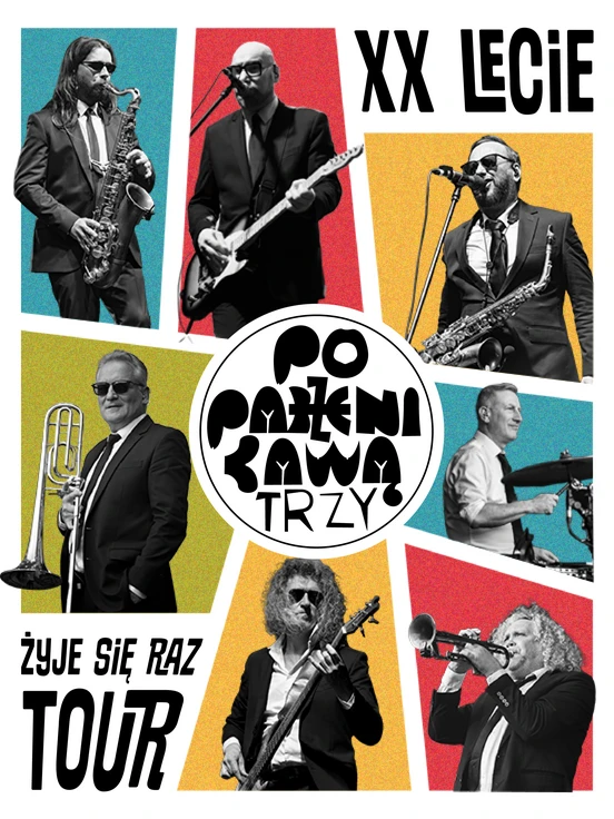 Siedmiu gentlemanów obchodzących swoje XX-lecie zaprasza na wspólną zabawę i niezapomniane przeżycia podczas jubileuszowych koncertów „Żyje się raz tour”! Zagrają te już kultowe i te najnowsze przeboje. Gwarantujemy, że podczas koncertu nie usiedzicie spokojnie w fotelach. Bilety na jubileuszowe koncerty zespołu Poparzeni Kawą Trzy już w sprzedaży.