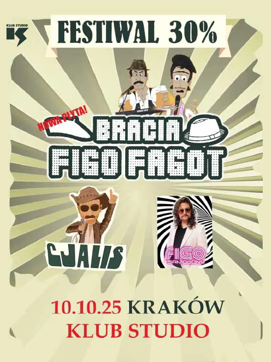 Już tej jesieni skłócona ferajna w składzie Bracia Figo Fagot, Cjalis oraz Figo i Samogony ruszą przez Polskę długą i szeroką, aby bawić się na całego! Na 30 procent.