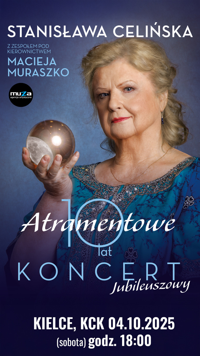 Koncert znanej i cenionej Stanisławy Celińskiej z towarzyszącym Jej od lat zespołem pod kierownictwem Macieja Muraszko. To jedyne w swoim rodzaju wydarzenie, na które składają się największe przeboje artystki z ostatnich lat. To ekscytująca muzyczna podróż, która zaczęła się 10 lat temu od prapremiery niezwykłej płyty „Atramentowa”.