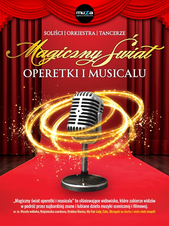 Zapraszamy na wyjątkowy mikołajkowy wieczór pełen muzyki, wzruszeń i niezapomnianych emocji! „Magiczny świat operetki i musicalu” to olśniewające widowisko, które zabierze widzów w podróż przez najbardziej znane i ukochane dzieła muzyki scenicznej i filmowej. Niech ten koncert stanie się niezapomnianym prezentem – dla duszy, serca i zmysłów! Bilety na koncert Magiczny Świat Operetki i Musicalu.