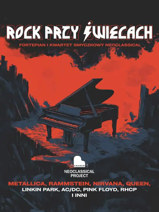 Rock przy świecach — prawdziwy rock w blasku ponad 1000 świec. Metallica, Rammstein, Nirvana, Queen, Linkin Park, AC/DC, Pink Floyd, RHCP i inni — legendarne hity w wyjątkowym wykonaniu fortepianu i kwartetu smyczkowego Neoclassical. Bilety na koncerty Rock przy świecach już dostępne.