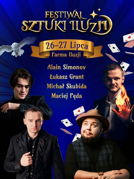 Przygotuj się na najbardziej magiczne wydarzenie tego lata - zapraszamy na Festiwal Sztuki Iluzji. W te dwa niezwykłe dni Farma Iluzji zamieni się w stolicę magii i niezwykłości! Bilety na VIII Festiwal Sztuki Iluzji już dostępne.