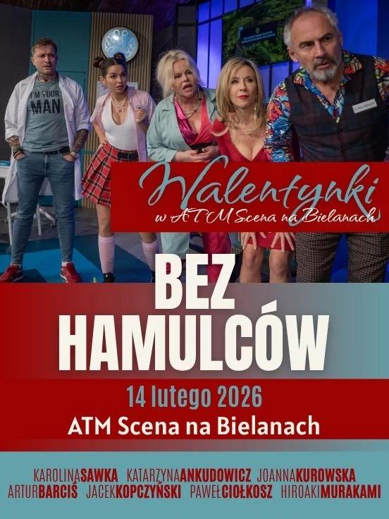 „…U psychiatry pojawia się pacjent, który bez żadnych hamulców mówi to, co myśli! A bardzo często myśli niecenzuralnie. Przypadek jest na tyle skomplikowany, że w jego zdiagnozowanie angażują się po kolei wszystkie siły kliniki, a z każdym pojawiającym się na scenie, coraz to innym specjalistą/specjalistką (to rozróżnienie płci jest bardzo istotne, tak samo jak różnorodność tych specjalizacji), akcja zagęszcza się i jest coraz śmieszniej. Trzeba tylko wyłączyć tytułowe hamulce i nie udawać, że gorszy nas to co słyszymy i co oglądamy na scenie! Wtedy jest naprawdę śmiesznie. Tym bardziej, że reżyser zastosował kilka tricków, których nie spotyka się w tradycyjnych przedstawieniach. To nadaje spektaklowi zupełnie inny rys niż mają klasyczne komedie.