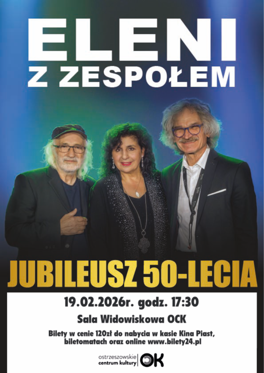ZAPRASZAMY PAŃSTWA SERDECZNIE NA WYJĄTKOWY, JUBILEUSZOWY KONCERT ELENI Z ZESPOŁEM. BĘDZIE TO MUZYCZNA PODRÓŻ Z NAJWIĘKSZYMI PRZEBOJAMI PIOSENKARKI, KTÓRE ŚPIEWA OD 50 LAT. USŁYSZYMY PIOSENKI ZESPOŁU PROMETUSZ, TAKIE JAK „ PO SŁONECZNEJ STRONIE ŻYCIA”, „BALLADO HEJ, BALLADO NIEPOKORNA”, W KTÓRYM ELENI ROZPOCZYNAŁA KARIERĘ. PRZEBOJE TAKIE JAK: MIŁOŚĆ JAK WINO, TROSZECZKĘ ZIEMI TROSZECZKĘ SŁOŃCA,, PO SŁONECZNEJ STRONIE ŻYCIA, A SŁOŃCE SOBIE LŚNI – TO KULMINACJA KONCERTU.