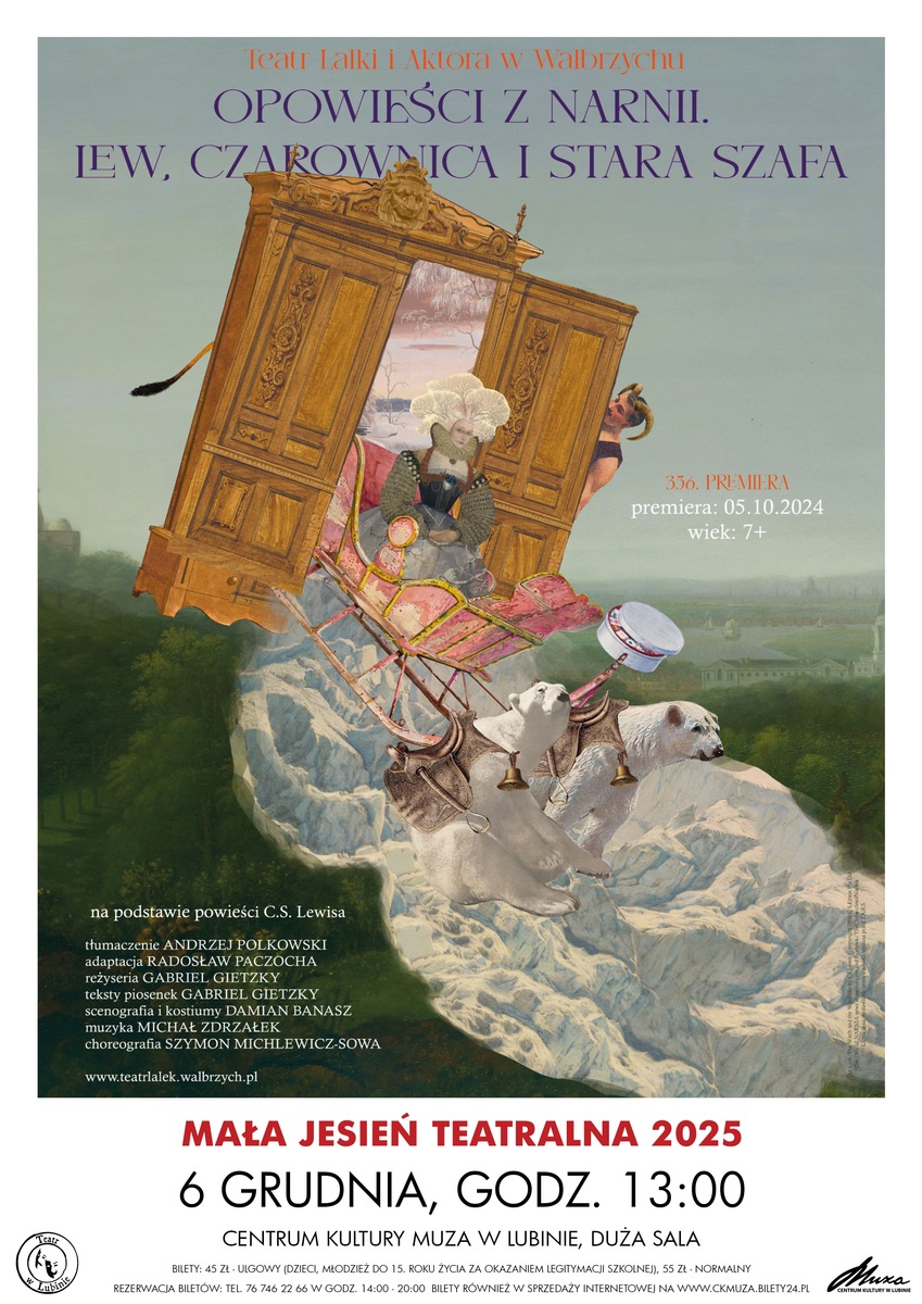Spektakl opowiada o przygodach czwórki rodzeństwa, która trafia do domu osobliwego profesora. Podczas tego nietypowego pobytu dzieci odkrywają tajemnicze przejście do Narnii – krainy wiecznego śniegu i zimy, w której rządzi od stu lat zła i bezwzględna Biała Czarownica.