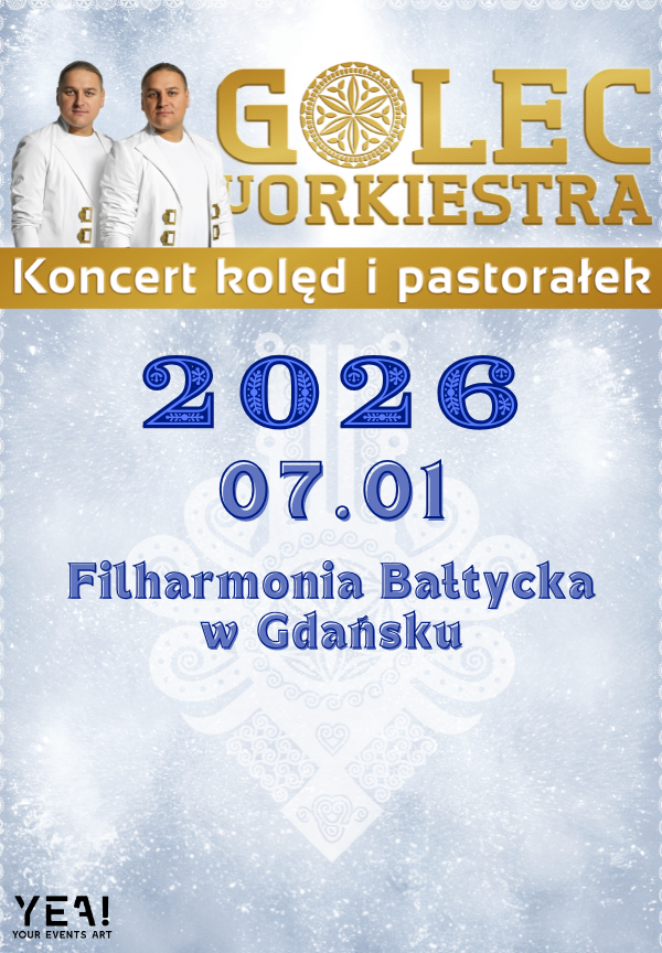Świąteczno-noworoczny koncert to wydarzenie, na którym słyszycie najpiękniejsze polskie kolędy i pastorałki. Wraz ze swą rodzinną orkiestrą, zapraszają do wspólnego kolędowania, zostawiając nas w magicznym okresie Świąt Bożego Narodzenia. Zespół gwarantuje, że choć na chwilkę poczujemy góralski bożonarodzeniowy klimat. Niezwykle pozytywna energia i mnogość dźwięków wykorzystywanych przez zespół to gwarancja doskonałej zabawy na wysokim poziomie. Przyjdź na koncert, by przekonać się o mocy kolęd Golec uOrkiestry!