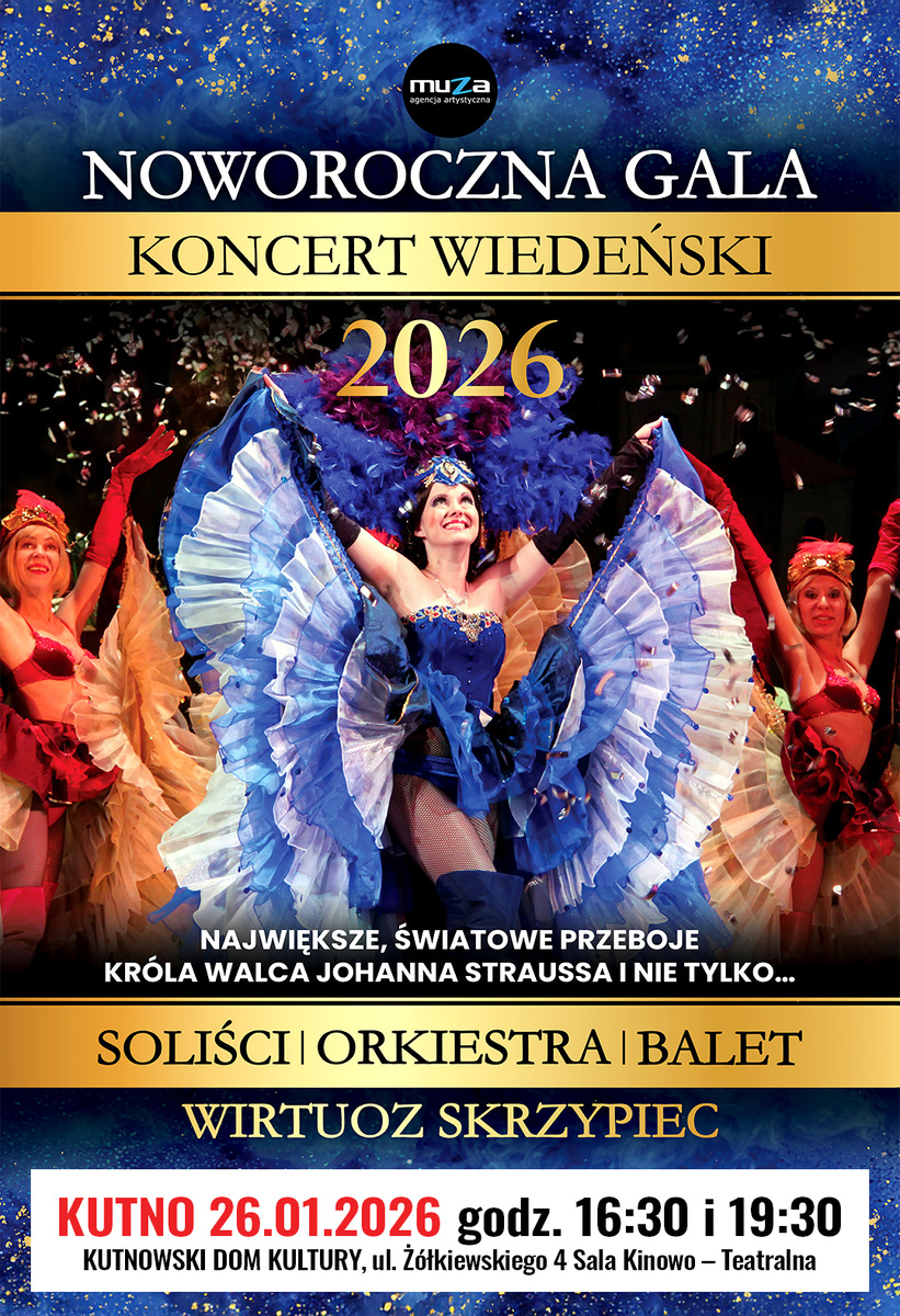 Mamy zaszczyt zaprosić Państwa w niezwykłą podróż po świecie muzyki – od romantycznego Wiednia, gdzie zatrzymamy się w świecie operetki i wysłuchamy najpiękniejszych utworów króla walca Johanna Straussa, po największe przeboje musicali pełnych broadwayowskiego kolorytu. Jest to kolejna edycja znanych i cenionych koncertów noworocznych organizowanych w całej Polsce od lat przez Agencję Artystyczną MUZA.