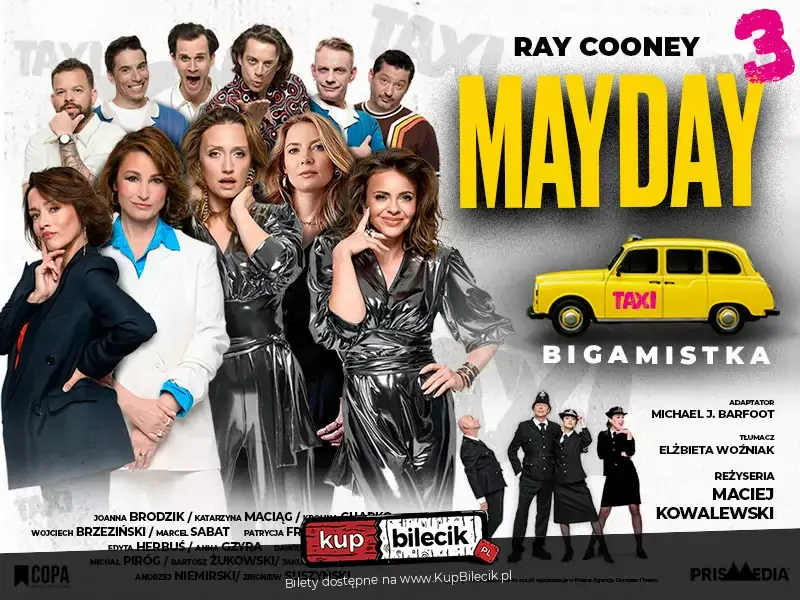 Jackie Smith jest mieszkanką Londynu, taksówkarką, a także... Bigamistką. Ma dwa domy, dwóch nie mających pojęcia o swoim istnieniu mężów oraz bardzo precyzyjny rozkład dziennych, a szczególnie nocnych zajęć. Niefortunny zbieg okoliczności - wypadek, sprawia, że do akcji wkracza policja. Sytuacja staje się dramatyczna, grafik Jackie zaczyna się sypać. Zdesperowana taksówkarka stara się ukryć swoje podwójne życie. Czy uda się jej zachować wszystkie sekrety w tajemnicy? Niesamowicie zabawne sytuacje zaprowadzą nas do rozwiązania tej zagadki. Mayday Bigamistka to znakomita, dynamiczna komedia Raya Cooneya w kongenialnej adaptacji Michaela Barfoota, w tłumaczeniu Elżbiety Woźniak i w reżyserii Macieja Kowalewskiego, znanego widzom z reżyserii kultowych spektakli: The Strings czy Kolejny wieczór kawalerski.