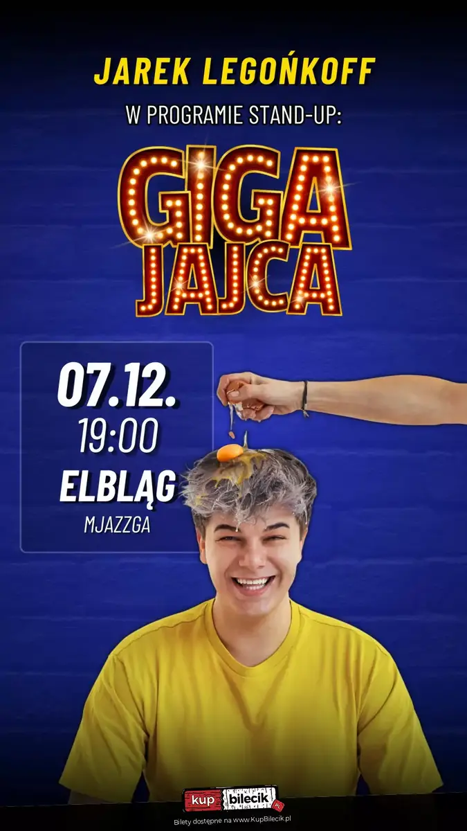 Tego wieczoru Jarek wystąpi ze swoim programem pt. "Giga Jajca", który w okrojonej wersji rozbawił już dziesiątki tysięcy osób, gdy Jarek prezentował go, występując jako support Daniela Midasa. Oprócz Jarka wystąpi również support. Zarezerwuj miejsce i do zobaczenia!