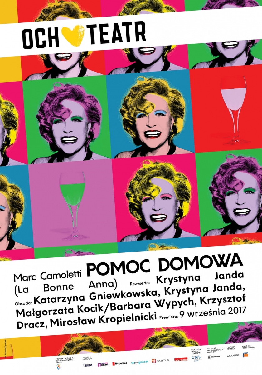 Pomoc domowa od lat święci tryumfy na scenach całego świata. Znakomite dialogi, błyskotliwe riposty i nieoczekiwane zwroty akcji gwarantują wyśmienitą zabawę. Wszystko w przezabawnym tłumaczeniu Bartosza Wierzbięty, autora dialogów do m.in. Shreka i Madagaskaru. W Och-Teatrze sztukę reżyseruje Krystyna Janda, którą zobaczymy w głównej roli.