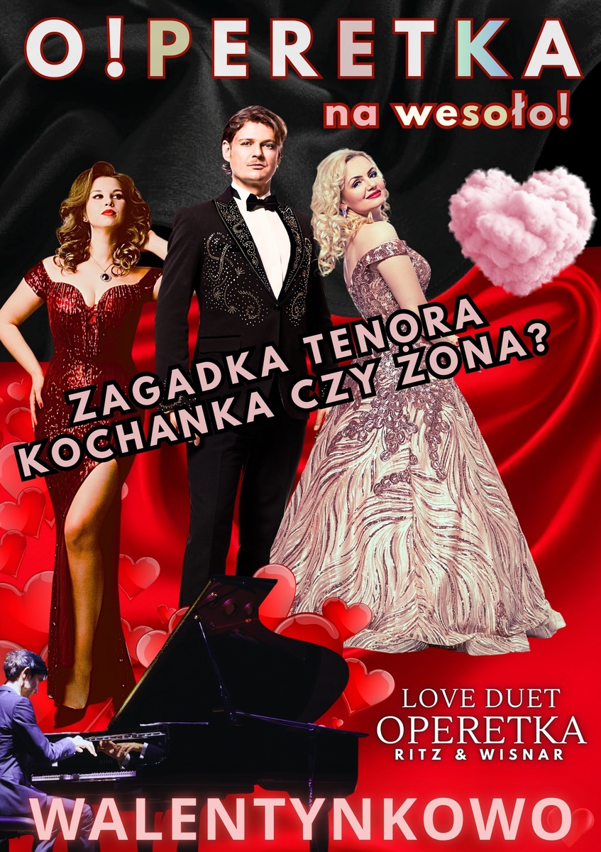 Zagadka Tenora Kochanka czy Żona - OPERETKA na wesoło! to ekscytujące SHOW pełne światowych przebojów, to dynamit uczuć z olbrzymią dawką kabaretowego humoru, to muzyczna opowieść o relacjach damsko-męskich, spektakl o miłości ustami szalonej Operetki!