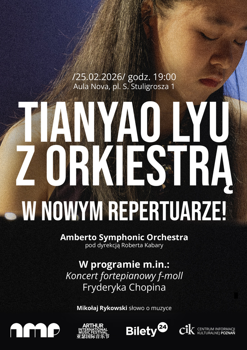 Wieczór ten będzie okazją do spotkania z osobowością i kunsztem pianistycznym młodziutkiej, ale już uznanej i zyskującej ogromny podziw miłośników muzyki fortepianowej, Tianyao Lyu oraz usłyszenia na żywo – po raz pierwszy w Poznaniu – znakomitej Amberto Symphonic Orchestra pod dyrekcją Roberta Kabary.