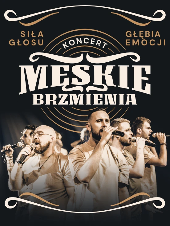 MĘSKIE BRZMIENIA – Siła głosu, głębia emocji. Czas na show, jakiego jeszcze nie było! Chór MĘSKIE BRZMIENIA – pierwszy w Polsce profesjonalny męski chór rozrywkowy przejmuje scenę, by nadać polskim i światowym klasykom zupełnie nowy wymiar. Usłyszysz utwory, które zyskają zarówno mocny, męski charakter, jak i bardziej liryczne brzmienie. Ale nie daj się zwieść – koncert to pełen balans muzycznych smaków. Przygotuj się na rockowe hity, klimatyczne ballady i niezapomniane kompozycje muzyki filmowej. Bilety na Męskie Brzmienia już dostępne.